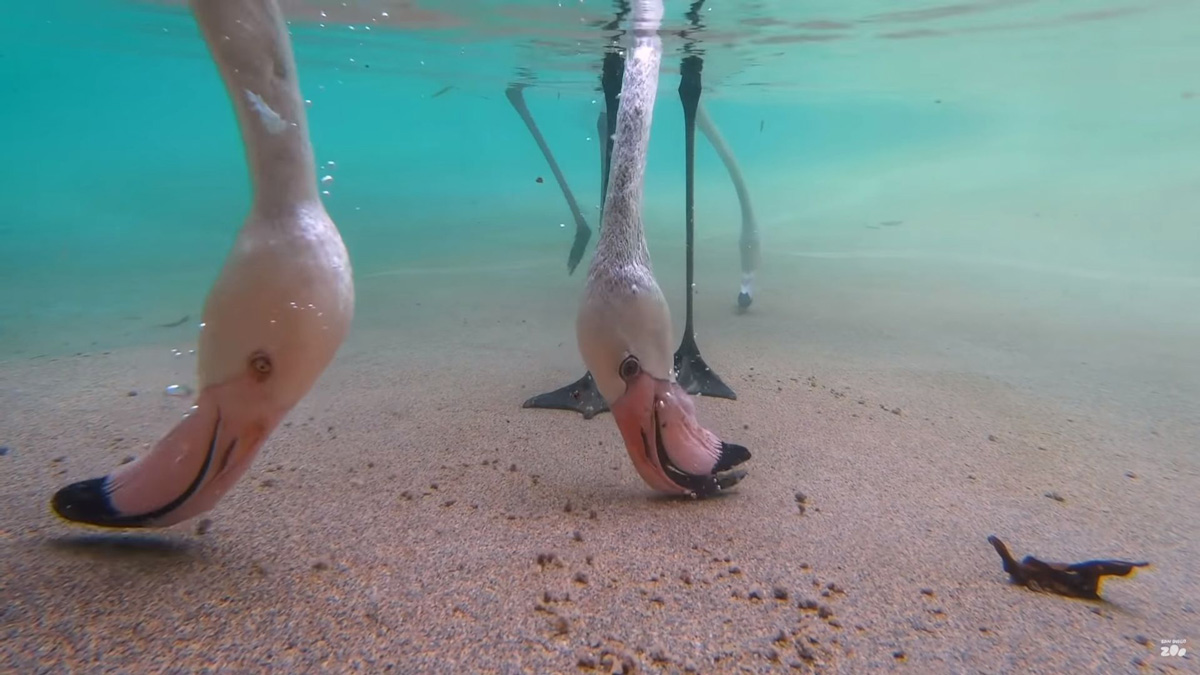 Enjoying Underwater Displaying Of Feeding Flamingos