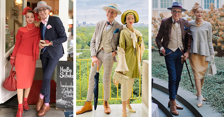 Adorable Stylish Aged Duo With Colorful Fashion Style