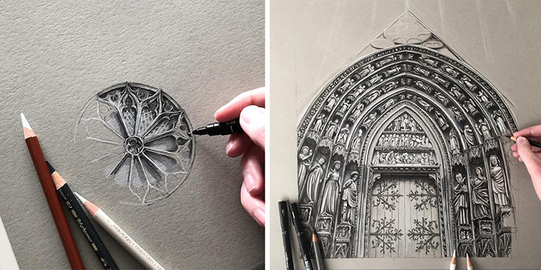 Intricately Detailed Architecture Drawings Capture the Beauty of Gothic Features in Europe