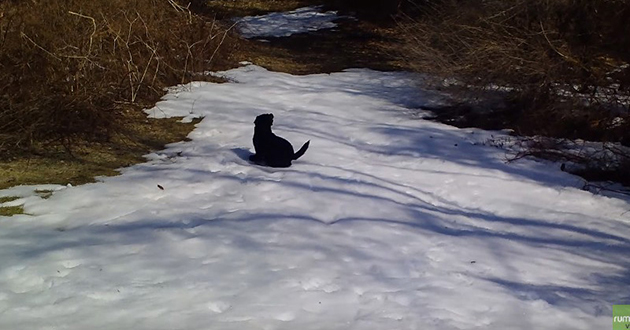 Lovable Dogs Black Lab Dog Body Slides In The Snow