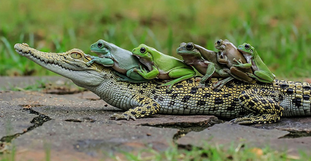 A Series Of Photos Show The Frogs Hitched A Lift On A Passing Crocodile