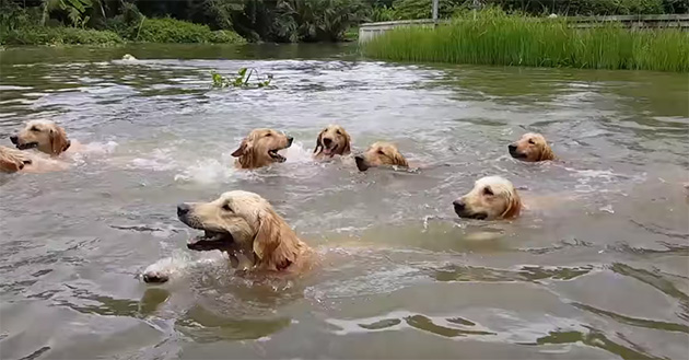 The Key To Happiness Is Precisely 16 Swimming Golden Retrievers