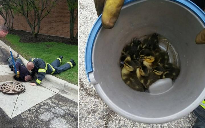Firefighters Rescue A Flock Of Ducklings Trapped In A Storm Drain