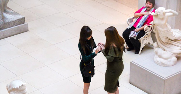 Look at how happy an older woman is when she sees a woman proposing to her girlfriend