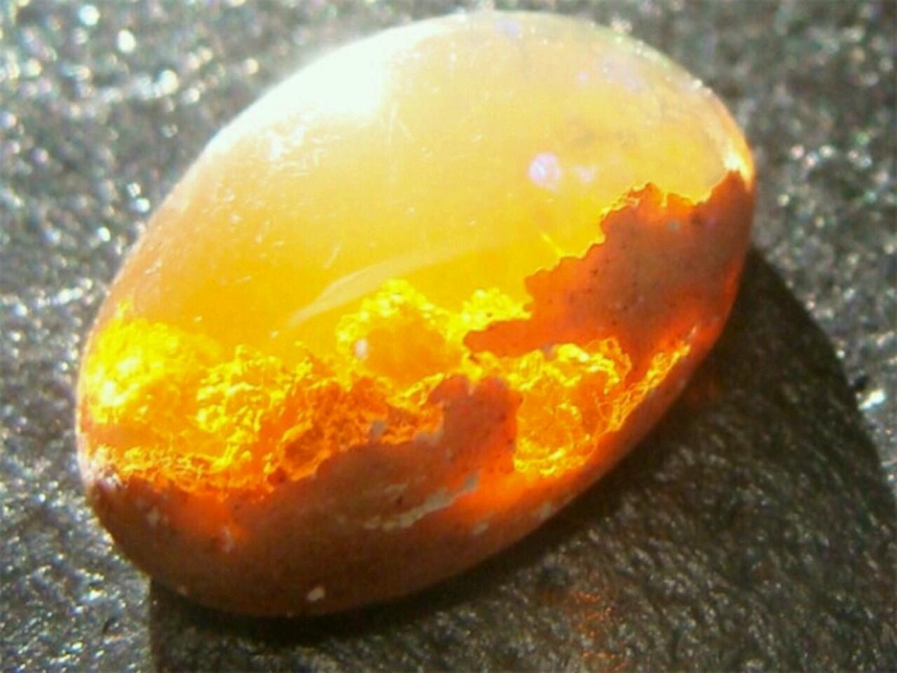 A fire opal — it really looks like sunset inside a rock!