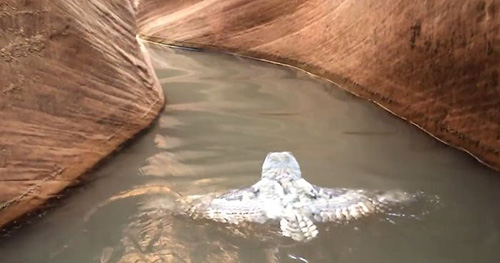 Hikers Capture Rare Moment Of An Owl Swimming Through A Canyon