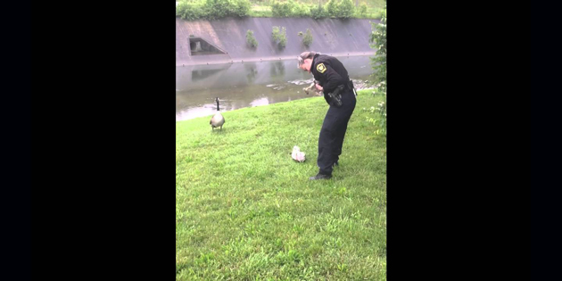 A Momma Goose Kindly Asked Police Officers To Help Her Gosling Who Was In Trouble