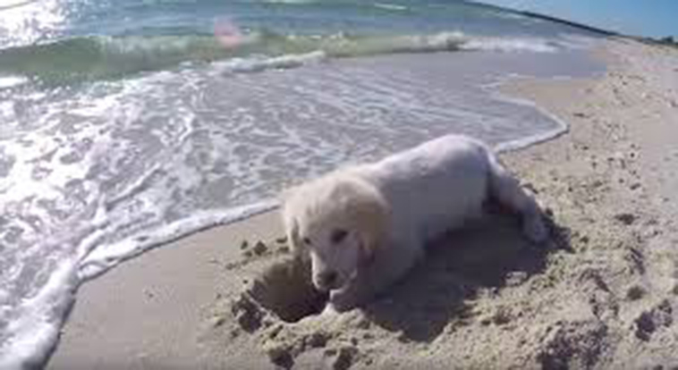 Puppy Digs Hole In Sand, Gets Angry When The Ocean Fills It Up Again